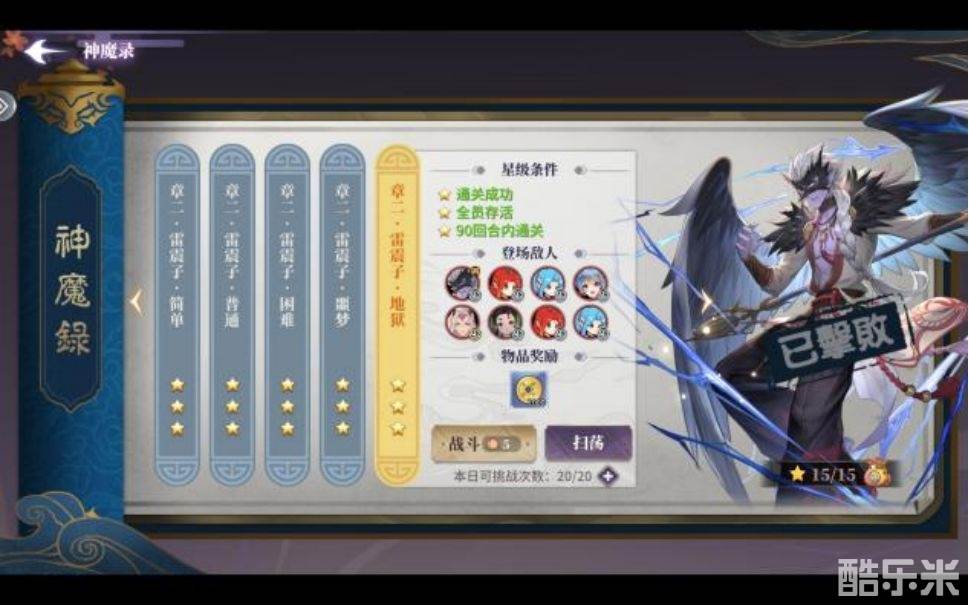 第二关神魔录地狱难度,主要BOSS是雷震子,整体阵容偏向续航