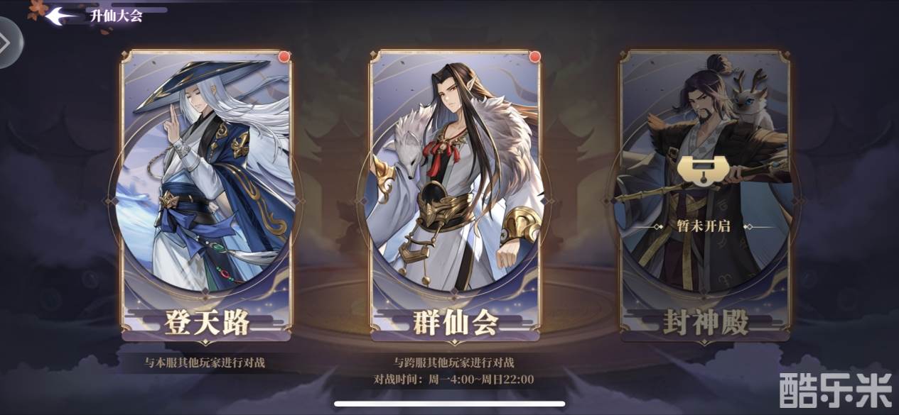 升仙大会总共有三个玩法,分别是登天路、群仙会和封神殿。目前登天路和群仙会已经开启。这两个玩法都可以与真实玩家进行对战。