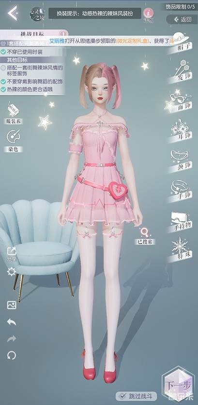 在选择配饰和鞋子的时候,要看左边那个蔚蓝港湾是否满足条件,因为其他选择会直接影响是否满足完全条件。