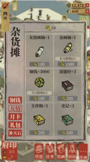 玩家可以使用友情点,然后就可以购买各种书籍,比如道德经、黄帝内经等等,这些都是非常不错的书籍,但是每次都需要花费200点友情点才可以入手。