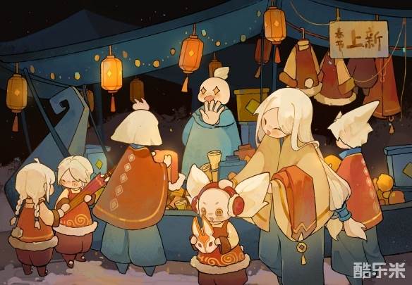 笔下的光之子灵趣可爱。新春集市张灯结彩、灯笼高挂,旅人@Ten_小腾 绘制了光之子们身着新年服饰,热闹赶集喜迎新春的画面。旅人@小狗心碎心碎小狗