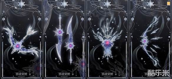 冰晶闪闪,雪雾缕缕。“镜花雪月”非战斗状态下看似只是一面镜子,优雅无害的外表之下却另藏玄机,一旦进入战斗便会瞬间变形化为武器!全新武器造型以雪花冰晶元素打造,锋刃凝结一点寒光,增添了锋利的凉意,看似精致易碎,却蕴含着凌厉的危险气息。精美纹样独具匠心,勾勒刻印于刃锋之上,堪称低调又华丽。流动的蓝紫色与镶嵌的旖旎宝石,有如镜花雪月相和,宛若琼树银花绽放,玲珑精致,将武器的华美高贵展示得淋漓尽致!