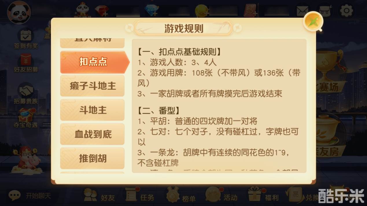 牌友们可以点击【大厅-设置-游戏规则】选择自己感兴趣的玩法,即可查看到该玩法的详细规则。