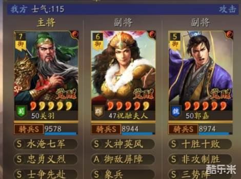 拒水断桥保生存补伤害,Sp关羽场内武力400上下,带拒水收益非常高。掣刀斫敌兼顾控制和破防,有忠勇的话建议也带上,没有的话选士争。推荐有刚勇无前的可以给Sp关羽配上(刚勇+忠勇)在不稳定的“概中概”里找稳定: