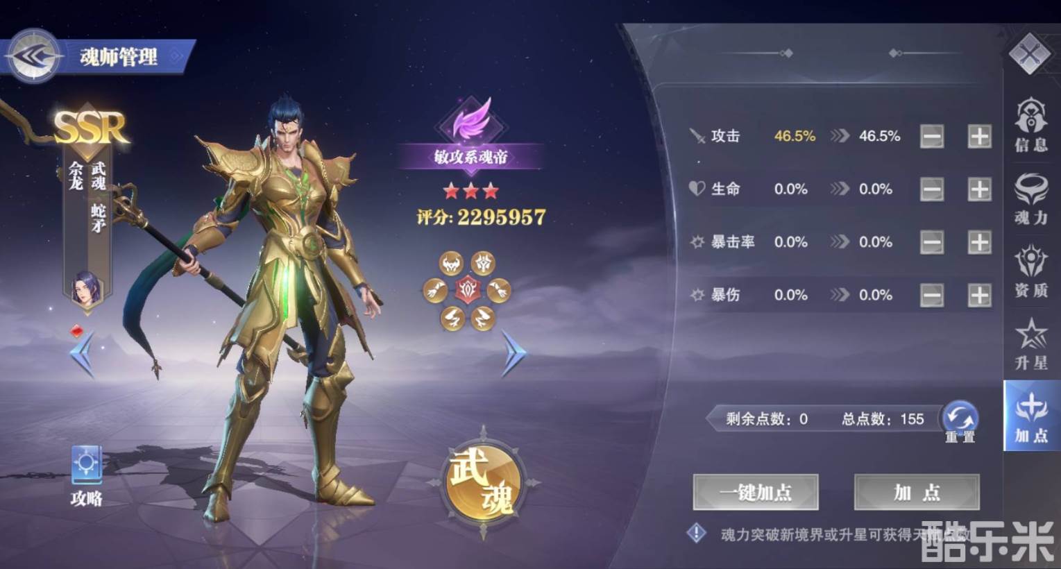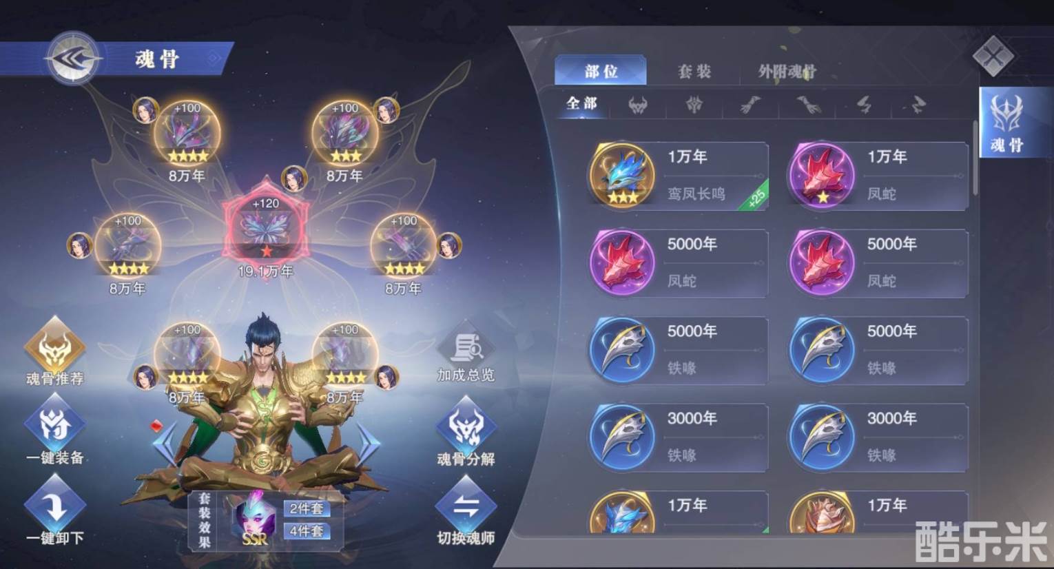 佘龙魂骨搭配建议蝶后裂空套装,这套魂骨也是目前游戏中敏攻系魂师用的较多的一套魂骨。