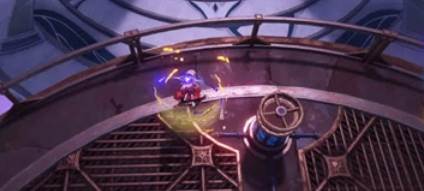 4、然后再用四叶印飞回来,再先旋转1下地上的开关,让电梯过来往左边主线路线走;