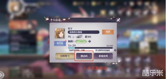 1)进入游戏主城界面后,点击头像!即可看到激活礼包码的选项;