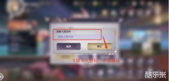 3)进入到兑换礼包码的界面,输入礼包码并点击确认;