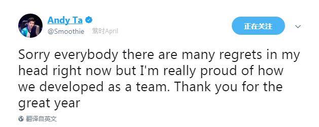 对不起了各位,我现在脑海里有很多遗憾和后悔,但是我也真的为队伍的成长感到骄傲。谢谢这么棒的一年。