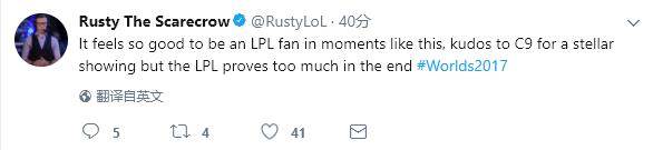 作为一个LPL的粉丝,这个时刻真的太美妙了。赞成一下C9出色的表现,但是LPL最后证明了自己!