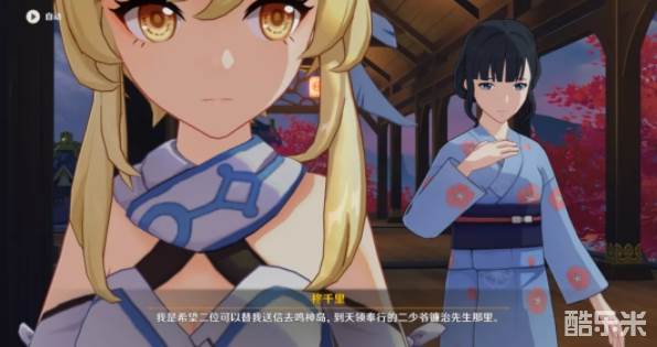 第四步:返回离岛,跟随指引来到柊家长廊前与柊千里对话,并将九条镰治的信交给她,对话结束即可完成任务。