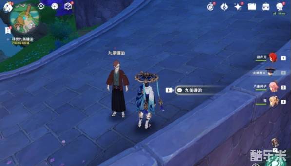 第二步:在天领奉行府前的桥上与九条镰治对话。