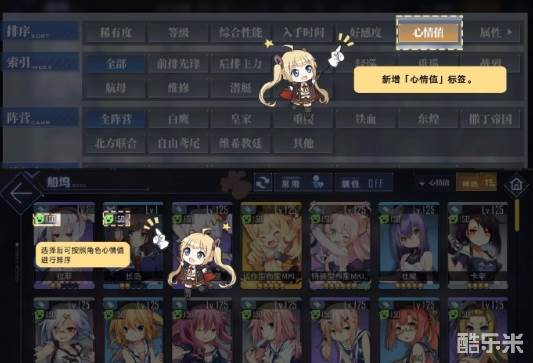 下次维护后,「船坞」的排序将新增「心情值」标签,选择后可按照角色心情值进行排序。