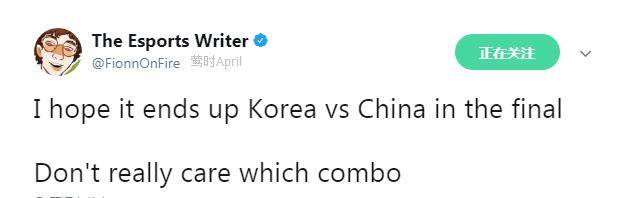 同时呢,这位北美的媒体人表示,希望决赛能看到中韩对决