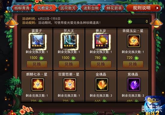 想拥有赛太岁的玩家,可立即登录《乱斗西游2》,参加正在进行中的“风檐萤火”福利大兑换:玩家在其他福利活动中搜集的活动代币“夜光萤”,可在此处兑换包括赛太岁、雷震子、和兕大王在内的一众强力英雄,以及金色注灵材料等珍稀道具。