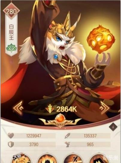 而大招,则是白辰王的标志性技能,可以立即回复己方阵容当中生命值最低的成员的血量,回复血量的数值相当于白辰王百分之一百五十的攻击力的数额,除此之外,还可以立即提升被回复血量卡牌角色的怒气值,使其有着更快的频率释放大招。