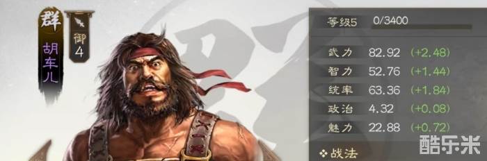 另外这个武将的特性就只有两种,分别是提升角色的统率值和武力值。在游戏中,他的强度其实并不高,里面还有很多比较出名的人物,他们的伤害和能力都是顶级的,但是获取难度自然也是比较大的,所以因人而异,如果大家现在没有什么好用的角色那就可以尝试使用这个了。