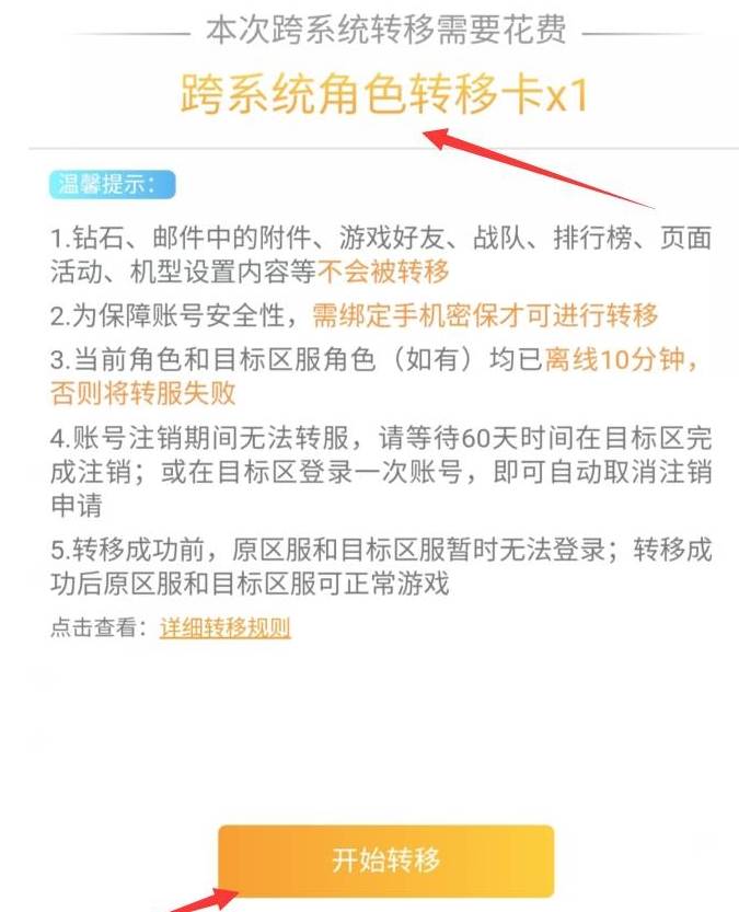 5.转移成功前,原区服和目标区服暂时无法登录;转移成功后原区服和目标区服可正常游戏;