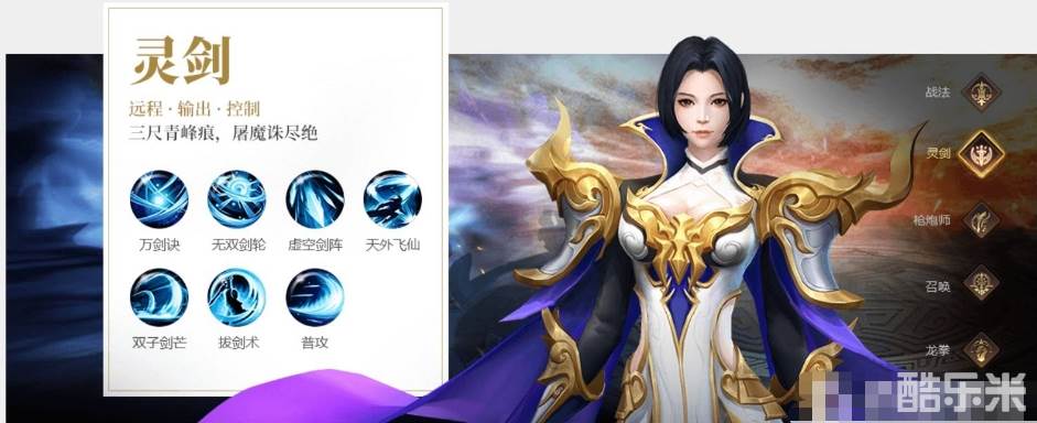 四、灵剑,以剑为武器,集美貌与勇气并存的控场职业,操作上需要一定的难度。一剑令出雷霆万钧,灵剑随时警惕着四周,时刻准备出手石破惊天的一击,让敌人随时消失在黑暗中。灵剑就像是天生的刺客一样,剑法灵动飘逸,拥有强大的输出能力,同时也能给出致命的一击,一剑惊阕。灵剑技能以控制、减速、群攻为主,尤其擅长天外飞仙、虚空剑意技能,对范围内造成减速、控制以及一定输出伤害。