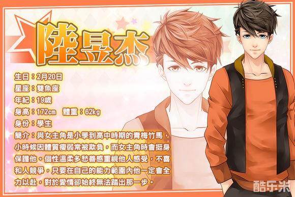 Hi~ o(* ̄▽ ̄*)ブ各位超级巨星,小编的男神攻略讲堂今日开讲啦啦啦~\(≧▽≦)/~,万众瞩目普天同庆,今天小编来讲玩与女主角是小学到高中时期的青梅竹马,小时候因体质瘦弱常被欺负,而女主角经常保护他的陆昱杰。