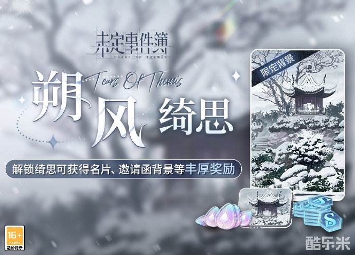 3.1版本更新后,「朔风绮思」正式上线。律师可通过解锁绮思获得名片【绮思·朔风】、限定邀请函背景【古亭】、【女神之泪】等丰厚奖励。