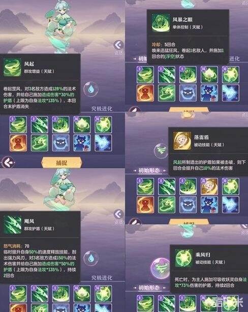 1技能,风起,AOE打3,伤害倍率128%,是目前已知宠物中,伤害倍率最高的群伤技能,而且还能拥有伤害结果30%的护盾,保守估计,基本上护盾的值能稳定在1000以上,太强了(麒麟哭晕在厕所)。