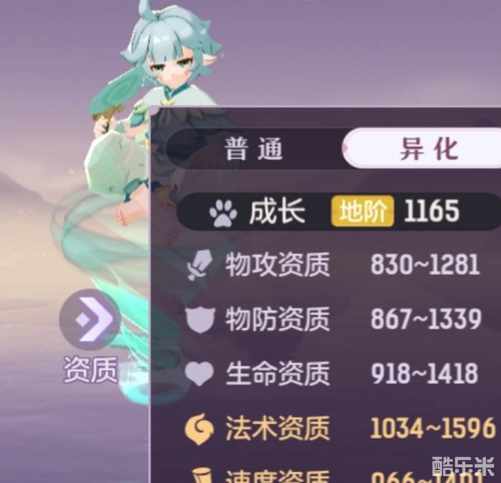 1、成长1165,法资1600,速度资质1520.图里是雷属性被动,风属性是放技能时候提升6%速度,水属性是护盾提升20%