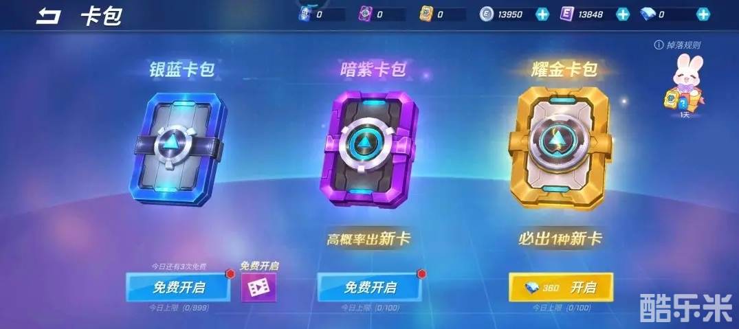 这款道具卡的收集还是比较容易的,因为这个道具只属于稀有道具,我们可以在银蓝卡包都会有几率开出来,还可以通过开宝箱易收集它的碎片。