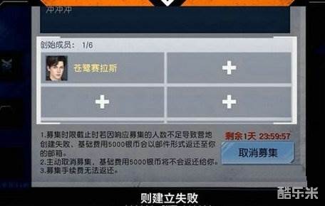 3、在规定的时间内,还没筹齐人数的就算创建失败,会将基础费用五千银币以邮件的方式返还给你,要是主动取消就不会返还。