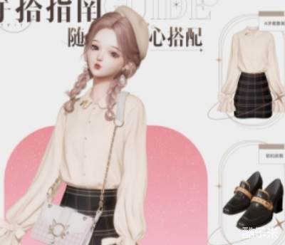 玩家在以闪当中搭配服装这方面可以说是随心所欲,就比如日常一点的装束推荐玩家选择杏色衬衫搭配包臀格子群,鞋子则是黑色方根小皮鞋配上格子褐色半筒袜。配饰上的小tips肯定也得跟上杏色贝雷帽和衬衫相呼应,米白色的格子小包更显娇俏可爱,耳环则是选择银色爱心款,咱们这一身主打的就是可爱风格。