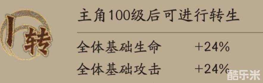 转生:主角每升100级,可以进行转生一次,(类似于九转轮回,越转越强),每次转生可以百分比提升角色属性。