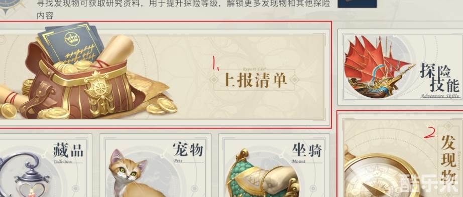 当找到所有发现物,点击“上报发现物”会自行前往“塞维利亚”收藏家爱德华处,完成上报后除了获取研究资料外还能获取:绑钻、银币、皇家招募券、探险币(探险商店购买物品)等物品,获取奖励的珍贵程度与上报清单星级挂钩,上报清单星级越高奖励也越高。