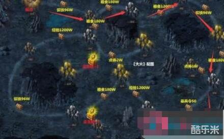和古城探宝是差不多的,这里一共有两层,第一层中奖励包含镔铁(96万/箱)、点券(2万/箱)、经验(似乎1200万/箱)、粮食(180万/箱)、募兵令(50/箱)、幻影,对于老区玩家来说并不是那么重要,新区是肯定要参加的,走完第一层终点会给20杜康酒。