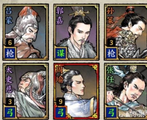 游戏里四都督队就是包含了这四大角色的队伍,游戏里最多小队可带九个人,所以剩下的位置是比较灵活的。这四个人分别定位是两个弓箭手加谋士以及枪兵的阵容,属于前排输出和辅助都有。