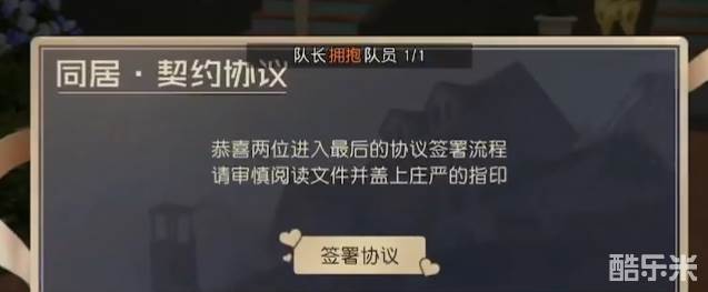 3、签署协议:双方的这个好友度在达到100后,并且都升到了七级庄园,那么这个时候就可以进行组队同居了。同居的话来到庄园领地牌这里先签一个这个协议,协议其实就是回答问题,基本都是有些内容还是比较简单的。