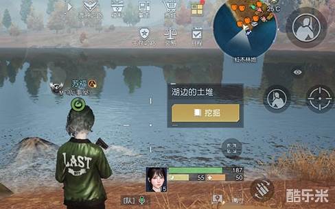 2、到达位置后可以在湖边的土堆处进行挖掘,既可获得宝藏。