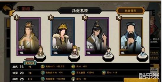 (3)你的阵容给威望多于等于8,这样你只要选择开局的复高祖之业并实行奖励功臣政策,就能直接触发范蠡的用间。