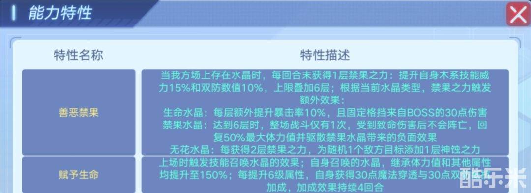 ⑵能力特性:善恶禁果/赋予生命(推荐善恶禁果)
