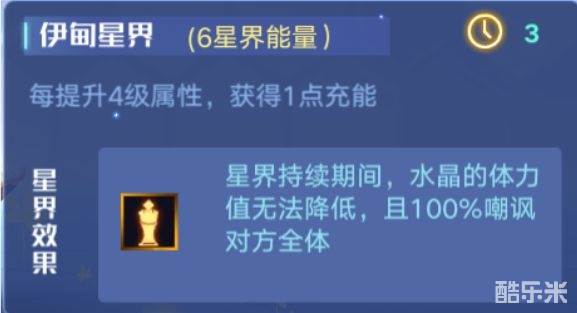 ⑤星界:可以等对面属性技能状态断了的时候用,或者等对面伤害很高的时候使用,比如放大招的时候。