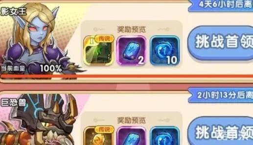2、每个模式每天都可以进行挑战,而且没有太高的门槛和难度,该模式的BOSS在固定的节点进行刷新。虽然难度不大,但奖励却一点也不少,比如在通关后可以得到传说卡牌、传说卡牌碎片、结晶等道具,因此玩家可以通过该模式反复刷取碎片,从而快速得到传说卡牌。