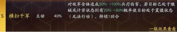 最后一点,刘备第3战法,带的盛气凌敌,那么吴骑肯定就没法玩盛气+横扫的套路了,因此我们这里的张飞一定要带上横扫,大丹认为在三战的诸多战法之中,唯有盛气凌敌+横扫千军,绑定最深,不建议拆开,两个战法一起挪。盛气凌敌在当前突击队盛行的情况下,还是比较有优势的。