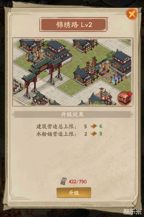通过消耗交子提升街市等级,提高单类建筑营造上限。建筑营造总上限越多,每次巡游所需体力越多,同时获得奖励也越多。达到对应街市等级可领取等级奖励。