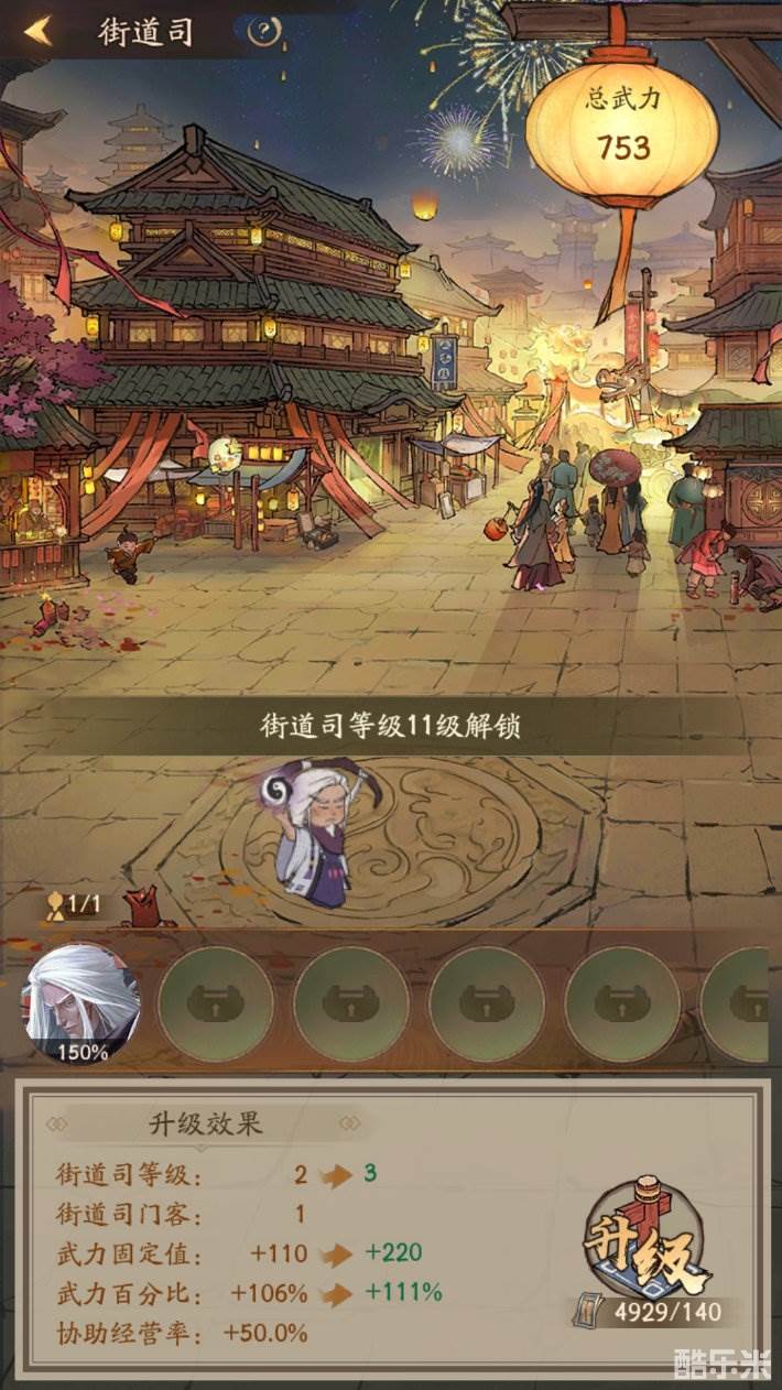 街道司等级可消耗交子提升。等级越高可委任门客上限越多,街道司武力值越高,巡游随机进入货铺协助经营概率更高。