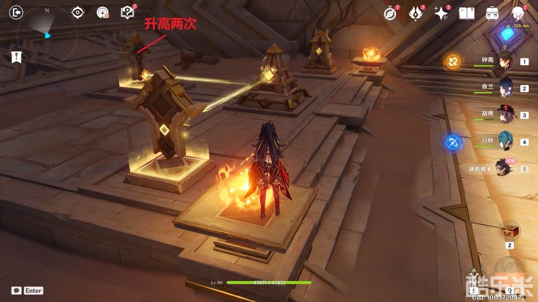 7,开启宝箱后,顺着楼梯上去,先去左手边,升高中间的发射器两次