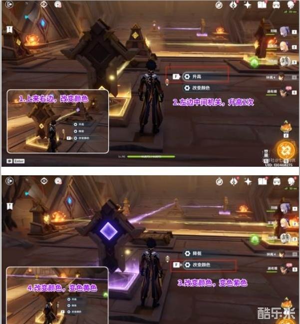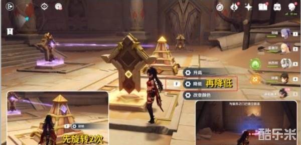 继续往里走,看到机关,先把中间的机关旋转2次,就会下沉,再把黄色光线的机关降低即可开门了,就能看到宝箱了,同样打掉怪即可获得。