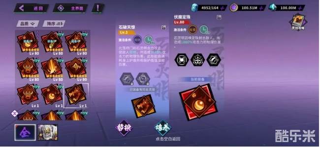 玩家在此界面中,进行寄灵人守护灵技能搭配配置。点击目标守护灵技能,选择【装备】后,选定需要配置的位置,即可完成技能的装备。次界面中3个技能栏的位置,与战斗中的三个守护灵技能的左中右的位置,是相呼应的。除了守护灵技能的装备,还可以在选中守护灵技能的弹出界面点击【培养】,进入如下的该守护灵技能的培养界面,对守护灵技能进行强化、升星和共鸣三个维度上的养成。