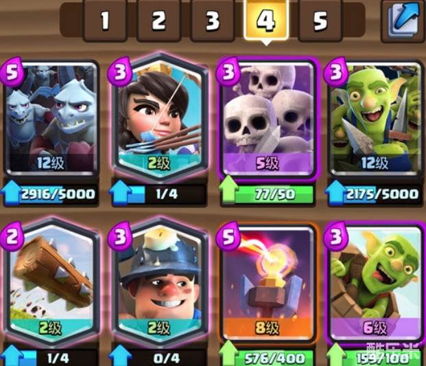 起手思路:卡组在使用上属于偏消耗的组合,所以在开局阶段能够选择的卡牌很多,起手如果有哥布林飞桶或者掘地矿工,可以直接丢出其中的一张主动性消耗,如果没有这两个单位,则选择沉底公主稳场防守即可。