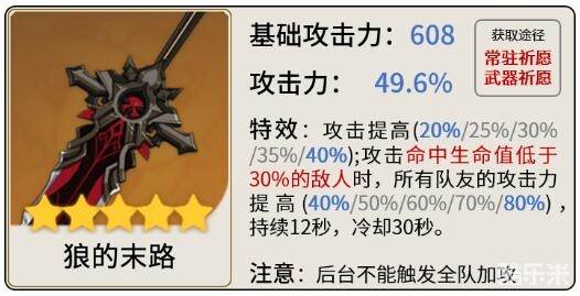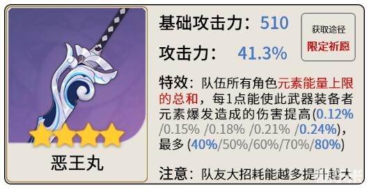 优点:活动免费获取的满精武器,能够提高一定的元素爆发伤害。
