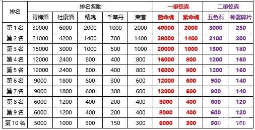 活动期间累计消耗金币达到20000金币,可以额外领取一重惊喜奖励(蓝命魂,紫命魂);