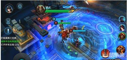 通关小技巧:我们可以先开两边箱子,再打BOSS,由于BOSS会用黑旋风把我们往外面撞,需要及时的打断,并迅速去开箱子。